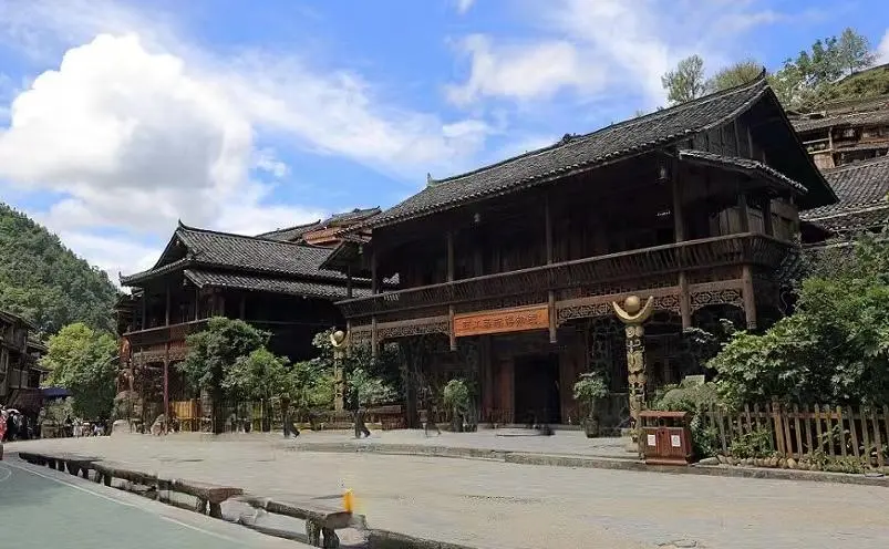 Xijiang Miao Museum is a typical Miao style building, the first floor is brick and concrete structure, the second floor is wooden structure, the appearance is unique Miao stilt house.