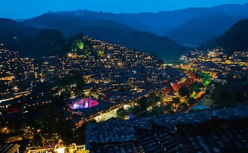 The thousand Miao village in Xijiang, consisting of more than ten natural villages built on the mountain, is inhabited by thousands of Miao families, surrounded by mountains, and the Baishui River runs through the village. It is the largest Miao inhabited area in the world, known as "the first Miao village in China".